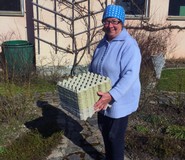 ![]() | Malgoschata Sie ist unsere Künstlerinnen im Eiersortieren.. Die Sortiermaschine ist zwar amtlich geeicht, aber wenn ein Ei mal falsch gewogen wird, erkennen unsere Eier-Managerinnen mit scharfem Blick diesen Ausreißer! Außerdem legt niemand die Eier so flott, beherzt und doch äußerst sanft in eine Eierschachtel. | |